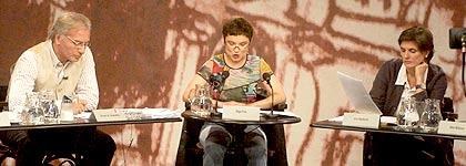nach der Lesung von Olga Flor, sie wurde von Daniela Strigl