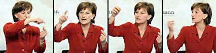 bildet. Es ist das Spielen, das die sprechende Person macht.